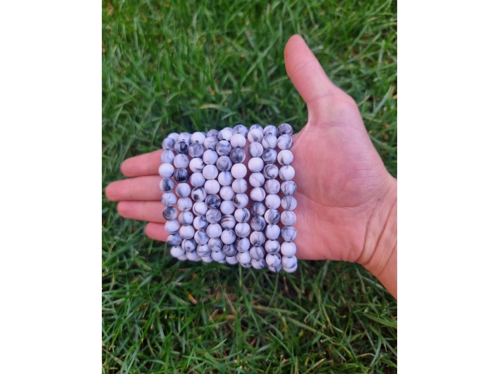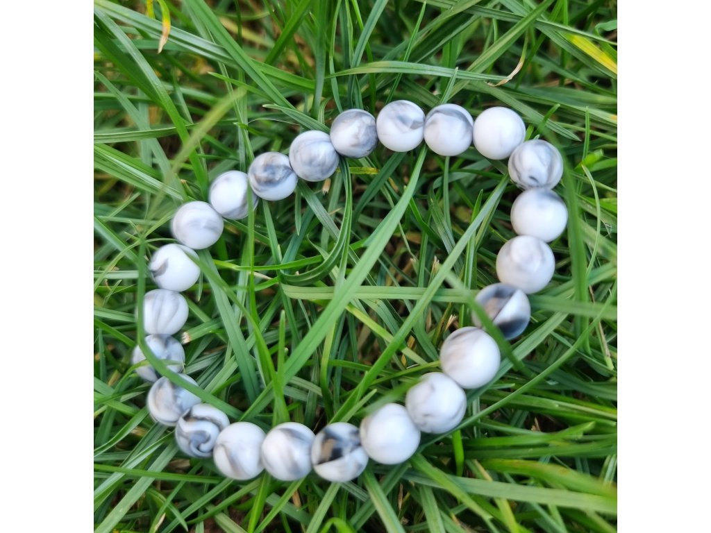 Velice slušivý náramek z černobílých korálků na pružné gumičce.